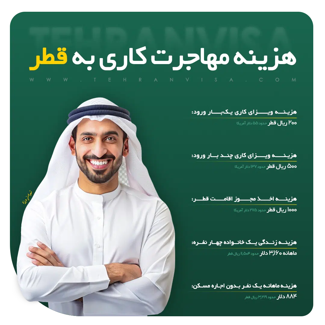 هزینه‌های مهاجرت کاری به قطر شامل ویزا، مجوز اقامت و هزینه‌های زندگی است.